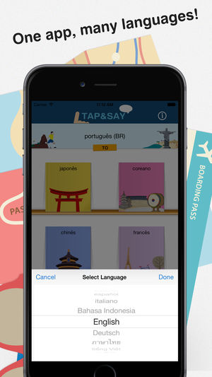 "如果你热爱旅行或语言学习,Tap & Say 将是完美的应用程序。" 环游世界,突破语言障碍 ! Tap & Say 是一本涵盖世界 17 门语言的手册,每一门语言都有超过 600 个经归类与翻译并带母语者发音 音频的必备短语。 会说几句外语可以使你的旅行大不相同。人们乐意看到你尝试去说他们的语言,你将结交到更多的朋友,在旅行中享受更多的乐趣,并为紧急情况做好准备。 语言 • 英语 • 日本 • 韩国 • 泰国 • 越南 • 印度尼西亚 • 法国 • 德国 • 西班牙语 • 意大利 • 中国 • 廣東話 • 葡萄牙语 • 葡萄牙语(巴西) • 西班牙语(拉丁美洲) • 阿拉伯语 •…