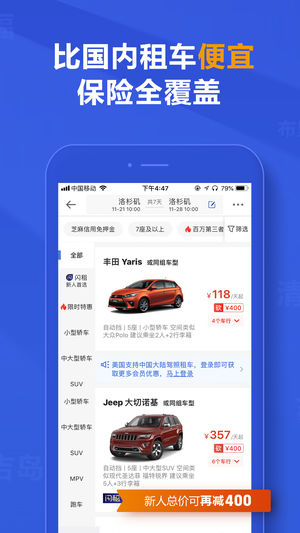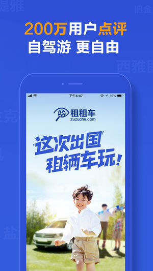 租租车(zuzuche.com)是中国领先的出境自驾游平台。出国自驾 轻松租车,有中国驾照就能租!提供全中文预订和7x24小时全球中英文客服、中文取车向导。是全球知名连锁车行在中国战略合作伙伴。服务覆盖包括美国、加拿大、澳洲、新西兰、欧洲、东南亚等全球200+国家和地区,已为逾2000万全球华人提供出境自驾游租车服务。 【2000万用户】 租租车7年始终如一,陪伴2000万用户无忧自驾200个国家,成就行业领先品牌! 【全球100000+门店!】 全球200国知名连锁车行在中国战略合作伙伴,覆盖Avis、Hertz、Alamo、Budget、Europcar、Sixt、Enterpris…