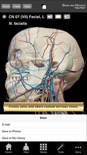 《大脑和神经系统解剖图谱》(Brain and Nervous Anatomy Atlas) 是神经系统解剖、生理和常见病症的快速视觉参考。这款 iPhone/iPad 应用程序包括数百个三维模型、动画和插图。这个程序是用英语。 这个应用程序非常适合于专业人士参考,并可作为中枢神经系统、躯体神经、大脑、肌肉收缩、视力及听力等方面疾病患者的教育工具。 此应用程序的内容包括: (1) 动画和插图。 (2) 数十个神经系统结构的三维模型,以及其他身体系统的有限数量的模型。 (3) 超过 1,000 个神经系统解剖结构的定义和发音。 (4) 超过 25 种常见疾病的描述。 您可以用这个应用程…