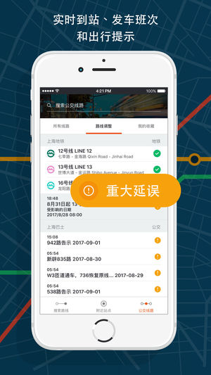 苹果商店2017年度最佳应用。Moovit是全球第一的公共交通应用,受到超过2700个城市一亿用户的信赖。我们为您提供最准确的公交资讯,每17个小时新增一座城市。 【内容提要】 使用环球公交神器“Moovit慕移公交”,可轻松查询到某地的公交地铁路线,实时查看公交行驶位置:公交行驶到哪一站、还有几站下车、公交还要行驶多久到达目的地、哪里换乘地铁、地铁几号入口、地铁行驶方向;还可以在地图上查看路线。即使出国旅行,也可以无忧乘公交。公交导航必备神器,出国旅游贴心助手。 【支持城市】 Moovit支持全球2700多座城市,包括:北京、上海、广州、深圳、香港、台北以及新加坡、韩国、泰国、印度、美…