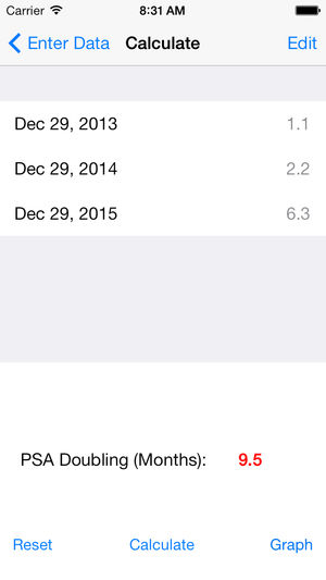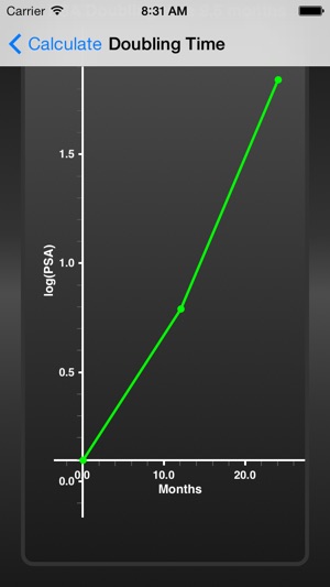 A calculator to determine the PSA doubling time based on a linear regression of the log of the PSA values vs time.