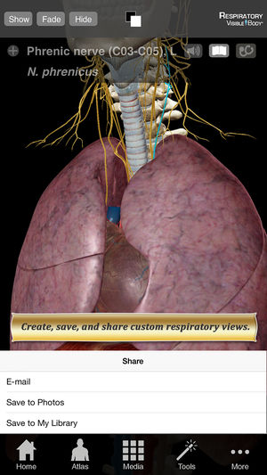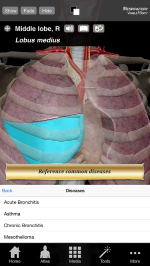 呼吸系统解剖图谱》(Respiratory Anatomy Atlas) 是呼吸系统解剖、生理和常见病症的快速视觉参考。这款 iPhone/iPad 应用程序包括数十种三维模型、动画和插图。此应用程序是用英语。 这个应用程序非常适合于专业人士参考,并可作为呼吸、吞咽、说话、哮喘、慢性阻塞性肺病、鼻窦炎等疾病患者的教育工具。 此应用程序的内容包括: (1) 动画和插图 (2) 数十个呼吸结构的三维模型,以及其他身体系统的有限数量的模型。 (3) 超过 50 个呼吸系统解剖结构的定义和发音。 (4) 20 种常见疾病的描述。 您可以用这个应用程序做什么: (1) 查看呼吸系统的三维结构。学习…