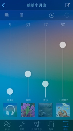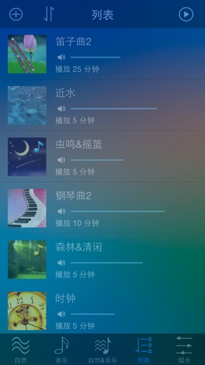 ‣【优秀】: 全都是5星评分 ‣【亮点】: 你能选择几种自然界音频和一首钢琴、小提琴、吉他或古筝等乐器音频 DIY 成您喜欢的音频. 可达到放松身心、助眠的效果! ‣【人性化】: 这几首音频组合播放的时候不是一下子同时播放, 而是先出现一些自然界的声音, 等进入了意境了以后, 那首美妙的乐器音频才开始播放, 而且音频播放声音是使用淡入淡出的效果, 使得您不会觉得音频切换很突然! ‣【温馨提示】: 在安静的场合或是睡觉前戴上耳机效果会更好. ‣【组合播放配置】: 参考在软件里面选择"配置方案"按钮可以自动载入, 不需要手工去配置, 此配置方案可以实时联网更新, 我们会不定时的推出…