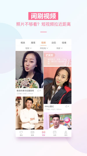 【内容提要】 单身男女的脱单神器,真实高效的同城约会交友平台。 【亮点介绍】 直播交友:多人在线互动直播,真实视频交友带给你最直接的感受。 实名制:实名婚恋网开创者,真实交友方能爱的长久(据说,不靠谱恋爱的都被这个大招吓退了,不服来战!)。 高质量高效率:1亿会员专程为爱而来,每天3000余人成功牵手。 心灵匹配:神准的爱情测试,助你找到最适合自己的恋人。不信来测! 专业红娘:全国130多家实体店铺、专业红娘团队为你而服务,情感路上不走弯路。 【主要功能】 直播:一键视频直播,最多可四人连麦,面对面聊上喜欢的人。 邂逅:左滑不感兴趣右滑喜欢,让您快速遇见对的人。 推荐:可以根据您的择偶意向…