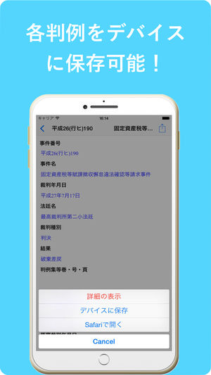 这是一个可以接受最新日本判例的应用, 所有的数据都可以保存到您设备(iPhone/iPod touch/iPad)之中,以便供您进行离线阅读。 1, 每天发布日本最高裁判所和下级裁判所的近3个月的,知识产权裁判所近1个月的判例。 2, 所有的判例都可以保存到您的设备。 3, 支持用可以用Safari打开各个判例的详细内容,以便导入到iBooks中。 4 ,支持的用户界面语言:日语,汉语(只有一部分),英语(只有一部分) 注意事项: 1,所有的判例文件都是日语。 2,对于用户利用该应用的数据,所引发的一切后果,该应用的开发者不负担任何的责任。 3,除了阅览已保存的判例外,需要在…