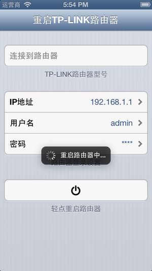 "很小很实用的App,设计简单!一级棒!" - 中国区用户评价 "工作的很棒. 我的房子很大, 配了四台TP-Link WDR-3600路由器, 我可以一键重启, 相当省事." - 英国区用户评价 轻轻一点, 重启您的TP-Link路由器. 无需每次填充路由器登录信息, 打开TP-Link路由器的web管理页面, 浏览重启页面, 确认重启信息. 只需一点, 即可重启路由器. 实为路由器管理的好帮手.