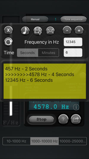 创建不同频率声音、驱虫或与亲友比较听力及分享结果!或看着他人努力地判断声音来源,却不知是你制造的。保证在聚会上给大家带来趣味! 特殊功能: -10Hz - 25kHz - 手动输入频率 - 创建音序,用于在某个特定时间段播放几个不同的频率 注意:若要与他人分享结果, 首先测试你的听力频率, 然后在扬声器下标记最低可听到的声音和最高可听到的声音(仅短暂存储)。小提示:图表显示了你的年龄可听到的其他频率。