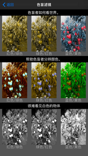 色盲者如何看世界。 帮助色盲者分辨颜色。 测试图片 相机输入