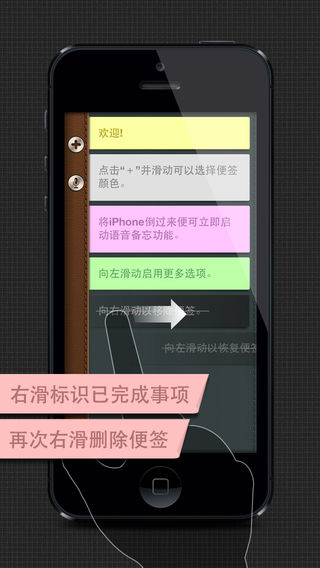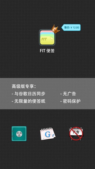 中国区效率榜No.1, 总榜Top20! 多个国家效率类“新品推荐”和“时下热门”榜热荐产品! 使复杂的生活简单得让人沉迷,让眼前的事情都能及时的完成! 这就是FIT便签,iOS上最便捷的快速备忘工具。 你是否已习惯了用小纸张去记事情, 贴在旁边提醒自己?我们让这个事情变得更有趣!它可以迅速帮你记下: - 突如其来的灵感 - 临时要写下来的电话号码和邮箱地址 - 准备买的东西 - 待会开会的发言要点 - 今天一定要办的事情 - 录下一个关键的谈话 - 直接告诉自己待会要做什么(如果你连写都嫌麻烦...嗯...我懂的) 生活中,许多人,许多事,不得不面对,却不值得留下,过去了的,就应该大踏步,向前走下去。 ★Pro 版独享功能: - 便签回收站,可以回顾已经完成并删除的便签,支持批量导出。 - 密码保护。个人隐私不再泄漏! - 与谷歌日历同步。把当天日历事件同步到本地,或者把便签mark到谷歌日历中。 - 无广告。整个世界清静了! ✭ 这是真实的用户评价 很棒 - 上架当天下载来实用,之后完全爱上了。使用非常流畅,而且便笺最多的字数完全满足需求。但是显示的颜色虽然 很多,效果却没有clear的渐变色好,不够鲜艳,只是还算好看。右划两下彻底删除的设计很好,防止误操作 ,语音的想法也很好,可以看出确实经过精心设计。我一直想要个类似的软件,能快速开启,作些备忘。本来觉得 免费的15条的限制完全够用,到后来却一发不可收拾,做的备忘太大,只能升级,支持开发商,望进步,将显示 效果再提高一点。还有想要通用版,可以在不同设备间同步。其实我最高兴的是这个软件真的很简洁,没有把fit的输入法做进去,相信不少人跟我一样还是习惯用自带的输入法的。 I wanted a nice, simple note app without all the complicated pictures, drawings, graphics and doodads. There are TOO many notes apps out there filled with confusing interfaces! So that's why I like this app. It starts up right away. Quickly touch the + to create a colorful new note. Start typing. Done. Love it! Better still, this app takes voice memos! All you do is turn your phone upside down and it instantly starts recording. Wow!!!! I am impressed. No complicated screens, no touching a million options to get to a screen. Nice and simple. If you need to take quick notes or memos on the fly, this is the app. 纷扰的生活只需记几个字、录几句话就可以变得很简单。FIT便签就是例子! 用一下,然后也告诉我你的感受吧 ^_^