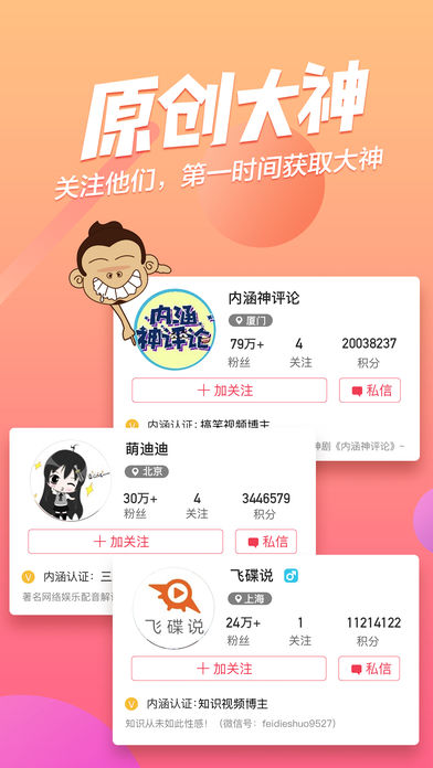 内涵段子,超过1亿人选择的App 注定是要成为2017年最火爆的内容社区,整个互联网最有趣的人都在这里啦! 最新鲜的段子,最爆笑的囧图,最有趣的动图短剧,承包所有你无聊的时间。 更有段友暴强“神评论”,花式吐槽,脑洞大开,麻麻问我为什么跪着玩儿手机…… 【装X神器get!】从此没有你不知道的梗!各路奇趣汇聚,一键分享,引爆朋友圈! 【丰富姿势】流量刷纯文,wifi刷动图(土豪们请随意),随时随地,各种姿势让你摆脱无聊时光。 【大神云集】各路女神、达人齐聚,给你最精彩的世界,记得点关注哦!