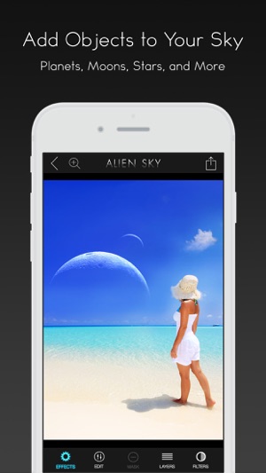 Reality is boring! Create fantastic and futuristic visions with Alien Sky. With Alien Sky, you can customize your sky with an amazing collection of high resolution space objects. Alien Sky also includes a set of futuristic lens flares optimized for your space explorations. Alien Sky gives you compl…
