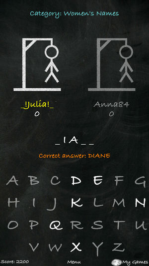 Waiting for a train, a bus? Got nothing to do, no idea to kill time? Missing online games and real opponents? We have what you need! Here is the new Hangman! Find all the pleasure of traditional game now on your mobile divice! Play now! Alone or online with friends! Compare your scores with your fri…
