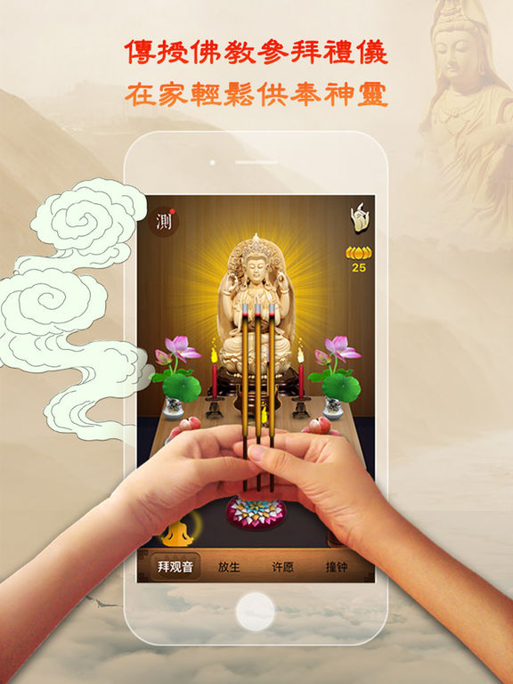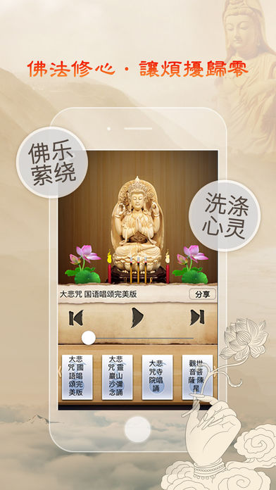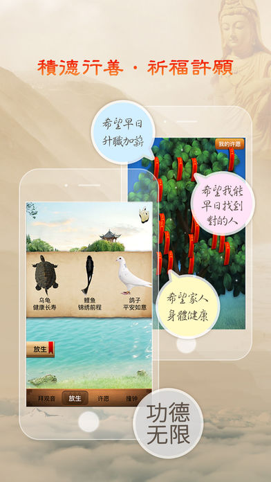 观世音菩萨是灵动菩提佛教品牌旗下经典参拜观世音菩萨的随身修行应用,通过礼敬和参拜观音菩萨,体验最真实的观音菩萨礼拜,通过聆听观音菩萨心咒,阅读观音菩萨经典,观音灵签指点你的人生,祈福忏悔,净化你的心灵。随喜赞叹,与观音菩萨结缘。 特色功能介绍: 1、 上万首佛音免费下载 2、 最全的佛经分类,海量经书任您挑选 3、 结缘千万佛友,法师在线开示 4、 佛诞,斋日等提醒,最全的佛历 观世音菩萨的六大特点: 1、随身礼拜和供养观世音菩萨,祈愿观音菩萨大慈大悲净化身心灵,一切罪灭尽,百宝从地生。 2、祈福观音菩萨,保佑你心想事成。忏悔过往,往昔所造的一切罪障及失戒定全部得以清净。 3、每日放生,可以积德行善,必能消除业障 4、手机也可以撞钟了,每日撞钟,闻钟声,烦恼轻,智慧长,菩提生,离地狱,出火坑”,帮助我们启智清烦。 5、观音灵签为您指点迷津。 6、诵读佛经, 聆听佛音,学习佛家的智慧,助你静心、定心、悟心、明心。 大慈大悲南无观世音菩萨: 观世音菩萨手执净瓶与杨枝,表示菩萨普救世间的广大悲行。三界火宅,众生心中充满热恼。观世音菩萨能体察众生的苦痛,时以瓶中的甘露水遍洒世间,使在热恼中的一切有情皆获清凉。众生信仰观世音菩萨,即渴求菩萨的甘露水,息灭内心的热恼。佛教劝诫,观世音菩萨确有令众生热恼变清凉的甘露水(甘露又喻佛法涅槃解脱之道),如时时虔诚的礼念观音,能得菩萨的悲心救护。 观世音菩萨具有平等无私的广大悲愿,当众生遇到任何的困难和苦痛, 如能至诚称念观世音菩萨,就会得到菩萨的救护。而且,观世音菩萨最能适应众生的要求,对不同的众生,便现化不同的身相,说不同的法门。在佛教的众多菩萨中,观世音菩萨也最为民间所熟知和信仰。在中国的江、浙、闽、广、台湾,以及南洋华侨间,观音信仰极为普及,所谓“家家阿弥陀,户户观世音”。 因为观音信仰所普遍存在的功利交换心理,佛教认为信仰观音应真心恳切,而不是苦难当头才临时抱佛脚。只有平时忠实真诚,才能和菩萨大悲愿力相应。唯有平时奉行菩萨言教,才能增长清净的功德资粮。好比人在病时信任医师诊治,一旦病好就完全忘却医生嘱咐,这样自然不会有长久健康。不但生病时需要疗养,无病时更需维持和促进健康。信仰观音菩萨,也应在平时忠实奉行。这样才能常得杨枝甘露的灌洒,常得没有热恼的清凉。 欢迎各位朋友关注修行者官方微信号:lingdongputi,期待与您共结善缘
