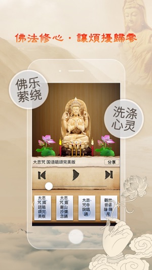 完整版可以聆听50首完整佛乐,免受广告打扰,可保存佛像等更多功能 特色功能介绍: 1、 上万首佛音免费下载 2、 最全的佛经分类,海量经书任您挑选 3、 结缘千万佛友,法师在线开示 4、 佛诞,斋日等提醒,最全的佛历 观世音菩萨是灵动菩提佛教品牌旗下经典参拜观世音菩萨的随身修行应用,通过礼敬和参拜观音菩萨,体验最真实的观音菩萨礼拜,通过聆听观音菩萨心咒,阅读观音菩萨经典,观音灵签指点你的人生,祈福忏悔,净化你的心灵。随喜赞叹,与观音菩萨结缘。 观世音菩萨的六大特点: 1、随身礼拜和供养观世音菩萨,祈愿观音菩萨大慈大悲净化身心灵,一切罪灭尽,百宝从地生。 2、祈福观音菩萨,保佑你心想…
