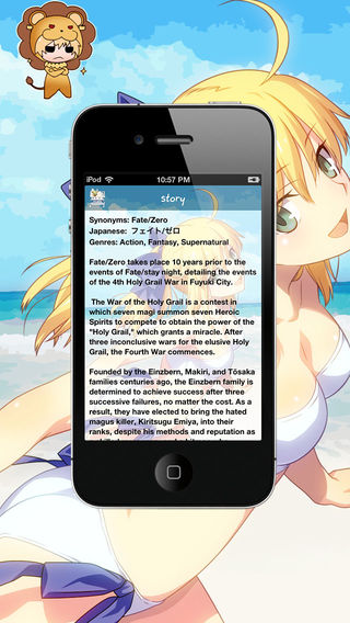 Hi Welcome to Fate/Zero ! Fate/Zero Wallbook Anime ======================================= From Dev. : Saber-chan in Blu-ray boxset version is so cute&moe~e~e >w<)b ======================================= This Application for Fate/Zero(Saber-chan) Fanclub This Application collects many details for Fate/Zero Fanclub such as - Wallpapers - Camera - Postcard - Synopsis - Character details - Agent site (Website,BBS,Forum and Shoping Item and Accessory) - Sharing and Social network
