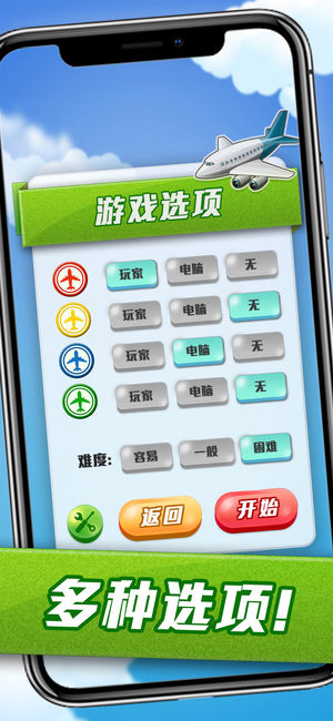 飞行棋大战一触即发! 飞行棋是大家必玩的童年经典游戏,留下不少童年回忆! 这款飞行棋界面简洁,棋盘一目了然,玩法和传统的飞行棋一致! 想重温一下经典玩意,立即和朋友家人玩玩! 集体回味,一起来重温下儿时的经典游戏! 简介: -------------------------------- 飞行棋是常见的休闲类版图游戏。它是以模拟飞机飞航为主题,游戏以飞机由机场起飞至目的地,先到达者为胜,所以称为飞行棋。飞行棋是中国参考英国图版游戏Ludo发展出来的(而Ludo则是从印度游戏Pachisi演变出来的) 特点: -------------------------------- * 支援Gam…