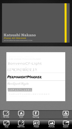 现在你可以创建自己原来的名片,在您的iPhone或iPod touch!名片设计有很多的选择,以帮助你设计你的清凉卡! 选项 - 各种卡的大小 - 字体类型 - 使用为背景的照片 - 酷邮票 - 调色板 - 空气打印 - 通过电子邮件发送的PDF文件 - 保存你的名片给您的相册 - 酷预置