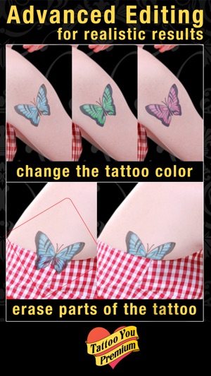 The premium tattoo app to add tattoos to your photos with no in app purchases required. See what that tattoo would look like before you commit or prank mom and dad. Download Tattoo You and add some spice into any of your mobile photos by adding in virtual tattoos with the click of a button right now…