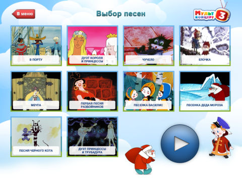 Детские песни, добрые мультфильмы – это Мультконцерт! • Работает без интернета. • Бесплатно! Установи приложение и порадуй ребёнка: • Для детей от 1 года; • Для тех, кому надо, чтобы ребенок поиграл сам; • Для развития ребёнка: возможность петь вместе с мультгероем – это не только слух и чувство ритма, но и море позитива; • Детское караоке. Подарите радость своему ребенку вместе с Мультконцертом: десять замечательных песен из мультиков – смотрите и пойте вместе с детьми: 1. В порту – мультфильм В порту 2. Дуэт короля и принцессы - мультфильм Бременские музыканты 3. Чучело - мультфильм Чучело-Мяучело 4. Ёлочка - мультфильм Новогодняя сказка 5. Мечта - мультфильм Летучий корабль 6. Первая песня разбойников - мультфильм Бременские музыканты 7. Песенка Василис - мультфильм Вовка в тридевятом царстве 8. Песенка Деда Мороза - мультфильм Дед Мороз и лето 9. Песня черного кота – мультфильм Голубой щенок 10. Дуэт принцессы и трубадура - мультфильм Бременские музыканты Не забудьте скачать и другие выпуски Мультконцерта!