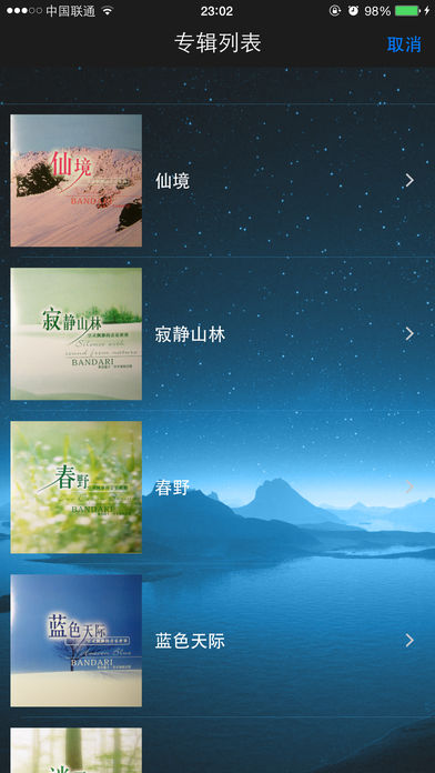 多久没感受到大自然的声音了? 多久没睡觉睡到自然醒了? 天籁中的音乐是大自然音乐的代名词,音乐中包含来自瑞士的罗春湖畔、玫瑰山麓和阿尔卑斯山的风声、流水声、虫声、鸟鸣,浪涛和风啸等天然音效,镇静您的情绪,松弛身心,给您以返回大自然的感觉. 听天籁,Alpha脑电波会增加,左右脑的沟通亦会更加有效,智慧因而慢慢打开,沁人心脾。 特色: - 精选13部专辑,每部专辑13~15首经典纯音乐,总有一款适合您 - 后台播放 - 定时播放 - 随机播放、顺序播放、单曲循环等播放模式选择 - 人性化的专辑选择模式,让您在同一个风格下的音乐中安静、减压、入睡 专辑介绍: 1. 情境音乐 –《仙境》 为现代人创造了一片美丽新世界,引领人们找回生命最原始的感动. 2. 优美名曲 –《寂静山林》 寂静山林,寂静的是让我们静静的,没有任何的干扰,淡淡的再一次聆听过去,聆听新世纪音乐对于通俗的熔化山林音乐视觉化,如亲临阿尔卑斯山的原始天籁。 3. 自然音乐 –《春野》 以瑞士春天为主题,走访瑞士最美的罗春湖畔(Luzen)和玫瑰峰山溽(Rose),以先进的数位采样技术,采集最纯净的虫鸣鸟语,为你传递在仙境彼端的新鲜绿野。借由音乐和全人类分享瑞士最美丽的季节。 4. 冥想音乐 –《蓝色天际》 探索人类自古以来对飞翔不变的渴望,当风声中的乐音响起,从宽阔的音场中即可领略到一种速度临场感,让听者不禁随之陶醉,宛如心神荡漾在两万英尺的高空里。 5. 放松音乐 –《迷雾森林》 迷雾森林将你带到充满朦胧美感的音乐世界里,在白蔼蔼的雾色中,享受万籁俱寂的宁静时刻。 6. 心灵音乐 –《日光海岸》 以更具透明度的音质,配合浪潮律动的编曲,呈现出抚慰心灵的听觉效果,仿佛置身在温暖阳光下,独自悠闲地漫游海岸,感受难能可贵的恬静时光。 7. 灵感音乐 –《梦花园》 用听觉领略在新世纪音乐花园里,每一场缤纷多彩的花期,以及盛开与凋零的两样美感。 8. 清晰音乐 –《琉璃湖畔》 让您紧绷的身心,一瞬间完全释放。浸淫在宽阔的阿尔卑斯山顶,空气透明到仿佛连阳光的颗粒都能看见. 9. 舒柔音乐 –《微风山谷》 仿佛在这14首乐曲中乘风而行,跟着地形的起伏而滑行于山谷间各个角落,感受平原的辽阔,山峦的雄伟,赞叹造物者的鬼斧神工。 10. 沉思音乐 –《月光水岸》 以夜为场景,将瑞士山林与天地间的自然静谧,转化成一首首澄静心灵的不朽乐章。 11. 山林音乐 –《雾色山脉》 重新演绎2首轰动全球的电影[魔戒]系列主题曲。 12. 环境音乐 –《翡翠谷》 从大自然与人的角度出发:透过直笛、 排笛乐器勾勒一望无际的自然景致;以吉他、 弦乐组来描绘人在面对大自然时无以言喻的单纯感动。 13. 心情物语 –《旭日之丘》 来自天空、日月、山川的心情物语。 音乐是心灵的安慰,音乐是生活的港湾,音乐是灵感的源泉,音乐是人类共同的语言,它将世界各地人们的心团结起来。希望所有的音乐能给您带来欢乐和安宁的美好时光。 联系我们: Email: sffofn@gmail.com 博客 : http://cococai.blogcn.com 新浪微博: http://weibo.com/2198540112