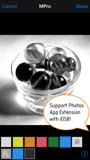 MPro App is specially for Monochrome Photograph. Has been designed to capture high-quality black and white photography. (Need iOS9 or later) Features # High Quality Picture. Has been designed so that it operates in uncompressed to save from internal processing to achieve high-quality processin…