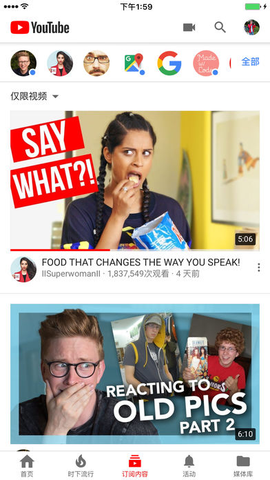 下载适用于 iPhone 和 iPad 的 YouTube 官方应用。 看世界之所看,享世界之所享 – 音乐、游戏、娱乐和新闻等内容尽揽眼底。您可以订阅频道、与朋友分享精彩内容、编辑和上传视频,还可以在任意设备上观看视频。 您还可以创建播放列表、探索当下热门视频、通过评论表达自己的想法、与朋友分享视频、将视频投射至电视,等等。一切尽在 YouTube 应用! 快速找到您喜爱的视频 - 在“首页”标签中浏览个性化推荐内容 - 在“订阅”标签中查看您关注的创作者发布的最新内容 - 在“时下流行”标签中发现世界各地最热门的视频 - 在“媒体库”标签中查找您观看过或顶过的视频 交流与分享 - 通过顶、评论或分享表达您的想法 - 制作/编辑视频、向其中添加滤镜效果或音乐,然后上传您的视频。一切在 YouTube 应用中即可搞定!
