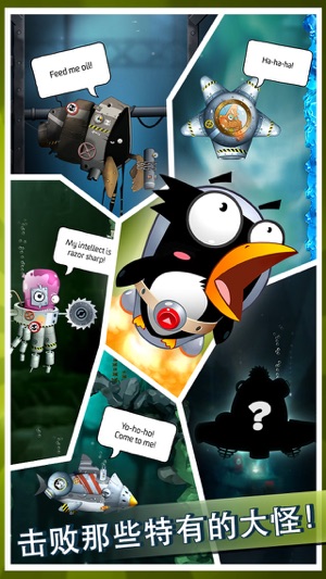 这只企鹅已经准备好把敌人全部做成寿司 • 企鹅复仇记全线出击 你营救被绑架妻儿的决心有多坚定?你愿不愿意和一个疯狂的发明家组队?!愿不愿意骑上一条身穿喷气动力潜水服的实验鱼?!愿不愿意大胆地去一个之前从没有企鹅到过的地方?是的,我们听到了 – 这才是勇气!同 Antarctica 上尉一起执行危险的任务,帮助他战胜顽敌克服障碍。消灭大量的 boss 拯救家人和朋友。 • 潜入大洋深处 当你下潜得越来越深时,要利用一切你所能得到的疯狂发明!艾德Ed 已经准备好了大功率手电筒应对黑暗;鱼的磁铁组件、能量储存器和一些奇怪的装置,此前他还发明过削水果机。以甜瓜和樱桃为动力的潜水服怎么样?!对..…