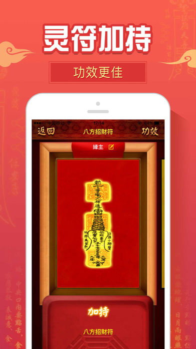 『诚心向善,请得灵符神灵庇佑。九天之上神君显,善子诉求心愿成』 【符咒简介】 符咒之术深入人心久矣!它是中国五术最玄奥的一门学术。自古为兵家必修之课,我国历代著名军事家、政治家如张良、诸葛亮、刘伯温皆善此术。目前,国外对此术颇为重视,以此术感情和合、消灾解厄、开运改运。若是沒有实用性及价值性,是不可能如此的根深蒂固源远流长的,许多人力无法或不易达成的困难事,可请用符咒之术而达到心想事成。 符咒的改变是一个缓慢改变的过程,通过积极的调理,让你走上正轨,在你的信念下,在符咒的支持下,见证你自己的改变和状态的改善。在红尘中修行,共同修持自己的心灵。 【四大特点】 1.不论何时何地,有向善之心即可恭请符咒得神灵庇护。 2.每道原符均由法师秘制,可达沟通天地神灵之效。 3.诸有烦恼何从祛,灵符傍身即可消。 4.符篆开光加持均为道家秘法密咒进行,更具灵性,效用持久。 【重要提醒】 人灵通于神灵、皆在画符咒之当事人而决定,敬重者自当灵验,才能产生巨大无比灵力、同时持符之人『诚信』二字,诚则灵、信则验。正所谓的『精诚所至、金石为开』及『吾心信其可行,虽如移山倒海之难,亦如反掌折技之易』