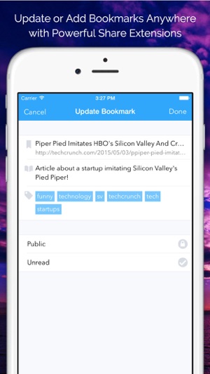 Pushpin is a beautiful, blazing fast, and feature-packed Pinboard client for iOS. Designed for both power users and newbies alike, Pushpin lets you browse, search, add, edit, and delete bookmarks seamlessly with a gorgeous interface. It also comes with two easy-to-use share extensions to help you qu…