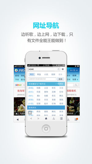 #最强大的文件管理工具,最高在30个国家排名总榜第1,装机必备,不下后悔!# #PC、苹果设备之间自由传输图片、文件# #内置网址导航浏览器,更安全# #超强视频播放器,文件阅读器 # #异地文件分享:长按要发送的文件,从弹出的菜单中选择“打开方式” 点击微信(或类似应用)即可分享文件给异地的好友。 您还使用连接线在手机和电脑之间拷贝文件吗? 您还在发愁电脑上的视频无法在手机上播放吗? 您还在担心手机上的照片或者视频等隐私泄露吗? 您还在郁闷无法打开邮件附件里的压缩文件吗? 您还在烦恼手机上的文件管理工具如此难用吗? 文件全能王的用途: # 把你的手机变成无线U盘,随时随地阅读、处理文件…