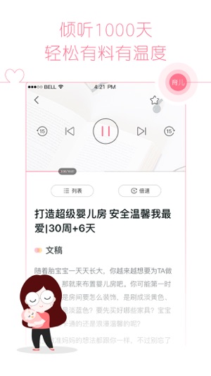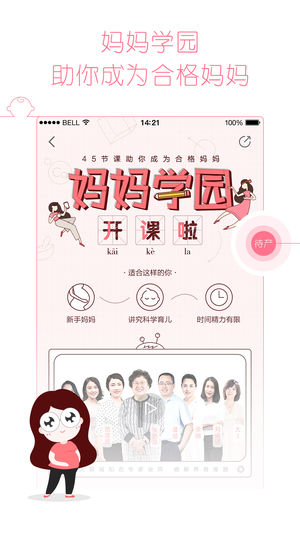 准妈妈和妈妈们所喜爱的app,提供专业备孕、怀孕、育儿全阶段的知识和服务,陪伴你和宝宝成长,让你享受孕育每一天。 【妈妈学园】联合八大孕育领域权威专家打造,45节音频必修课助你成为合格妈妈。 【有品榜单】提供客观产品消费意见,全年不间断输出优势品牌。 【私人定制】这里有海量的孕育内容,定制你的每日知识课堂,轻松学习不焦虑。 【母婴专家】有权威的专家团队,视频讲解孕育问题,每周在线给您专业建议。 【意见领袖】有引领精致生活的网红达人,跟你分享精彩的孕育生活。 【好物优惠】有深度评测的内容电商,告诉你哪些母婴产品口碑好,哪里有优惠。