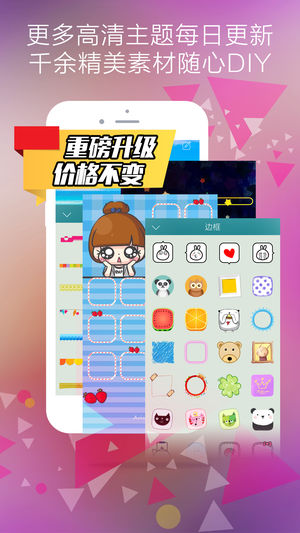 全新爱主题,从心开始!当红明星,萌系,清新,酷炫,Bling,简洁,情侣,节日,日历等各式原创主题应有尽有,让你的手机屏幕独一无二,成为人人羡慕的焦点。 亲们可以关注我们的新浪微博@爱主题免费版,最新更新情况均可随时掌握,同时可以和我们互动,告诉我们你喜欢的主题类型,我们会采纳你们的意见哟! QQ:1789732149 ,商务合作和客服咨询 -大量高清原创主题每日更新 -日历,节日,浪漫,材质,酷,炫彩,时下流行各式主题应有尽有,且不断增加中 -主屏DIY+锁屏DIY功能,千余种精美素材,制作自己的专属主题 -最新iOS简洁质感界面,让你轻松简单,随心所欲获取各式精美主题 -无限量保存…