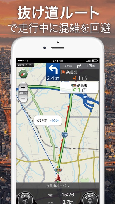 【国内初】道路地図データ生成自動システムで地図即時反映が可能に! * 受賞暦 * ◆『2016年度グッドデザイン賞(ナビタイムマイレージ)』を受賞しました! ◆第7回ATTTアワード「コンテンツ・サービス部門」で優秀賞を受賞しました! ◆モバイルアワード2015の「交通系アプリ」で3冠達成! お持ちのカーナビ、地図が古くなっていませんか? カーナビタイムはオフラインでもナビが使える高級感にこだわった本格カーナビアプリです。 地図や駐車場などのスポット情報は常に最新情報で更新され、リアルタイムな渋滞を考慮したナビゲーションを行います。 高級感にこだわった、きめ細やかなナビゲーションであなたのドライブをサポートします。 バイクやトラック、大型車など幅広い車種に対応し、それぞれの車種にあった最適なナビをご提供します。 最新技術で進化し続けるカーナビタイムでより快適なドライブをお楽しみください! ※本アプリケーションはオフラインでも使用できるよう地図データ等をローカルに保存します。そのため、サイズが1.48GBがあり、ダウンロードにはWi-Fi接続が必要です。Wi-Fi環境にない方やアプリサイズが気になる方はダウンロードにWi-Fi環境が不要なナビタイム「ドライブサポーター(65.8MB)」もご検討ください。ドライブサポーターでスマートフォンがカーナビに! ◆月額コースには初回に限り、1ヶ月のお試し期間が用意されております◆ 【カーナビタイムの特長】 ■地図を遠くまで見通せる、3Dスカイビュー表示 ・地図を3Dモードにすることで2D表示時より先まで見通すことができます ■愛車のあらゆる記録を残す「車両管理」機能 ・給油の記録から、燃費を自動で計算 ・燃費の推移をグラフで分かり易くチェック ・プロフィールに愛車の写真をセット ・タイムラインで愛車の記録を見易く振り返る ■トラック向け&バイク向けのルートを探索 ・車種ごとの料金案内や一部の通行規制を考慮します ■安全な運転をサポートするオービス通知 ・ルート案内中にオービスが近づくと音声と地図上のアイコンでお知らせ ■声でアプリを操作できる「ボイスコントロール」機能 ・音声で地図の操作、スポット検索、自宅までのルート案内開始など多くの操作が可能 ・「渋滞」と発話することで、ラジオのような道路交通情報をお知らせします ■Apple Watch Apple Watch を併用するとドライブがもっと便利に! ・ドライブの進捗状況をサッと確認 Apple Watch 上で案内の進捗率や、目的地までの残り時間・距離を確認できます ・ルート上の渋滞状況をひと目で把握 ルート上の渋滞・混雑状況を色で表現。休憩などの目安にご利用下さい ■最新の渋滞情報や未来の渋滞を予測したルート検索&リアルタイムリルート提案 ・1分ごとに更新されるVICS渋滞情報と過去の渋滞情報から未来の渋滞予測を考慮し、快適なルートを提案 ■通信圏外でのルート検索&音声ナビゲーション ・オフラインでも端末に保存した地図を利用してルート案内が可能!リルートも高速 ■常に最新の地図&スポット情報 ・通信圏内では、最新の地図でナビゲーション ・スポット情報もメジャーな観光地から穴場まで豊富に取り揃え、デートや旅行などのお出かけのプランニングにも ■いつもの道をアプリが学習して優先的に使用 ・走行履歴を学習し、よく走る道を優先的に通るルートを検索 ・よく走る道に交通情報があれば起動時にそれをお知らせ ■突然の雨にも安心!目的地のお天気情報や未来の降雨情報を提供! ・ルート案内開始時、案内中、到着時に目的地や経路上の天候情報をお知らせ致します ・1時間前から6時間後までの全国の降雨情報を地図上でサッと確認できます ■交通情報を簡易マップで表示 ・全国の渋滞・規制情報を一つのマップ上で確認可能 ・12時間後までの渋滞予測情報も閲覧可能 ・全国のSA・PAの施設情報や満空情報も閲覧可能 ■リアルタイムな駐車場満車空車情報&ガソリン価格情報 ・駐車場の満車空車情報を地図上にアイコンで表示(※1) ・地図上のガソリンスタンドに最新のガソリン価格を表示(※2) ■お得で便利なクーポンがご利用いただけます ・ぐるなび、ホットペッパーのグルメクーポン ・るるぶ、JTB、じゃらん、一休、楽天トラベル、日本旅行サイトへの有名宿泊施設への簡単予約 ■iPadの大画面なら、地図を見やすくお使いいただけます ■PC版NAVITIMEにもログイン可能 ・設定したNAVITIME IDを使ってPC版NAVITIMEにログインし、My地点やMyルートの共有も可能 ■その他の機能は下記リンクよりナビタイムのページを御覧ください http://products.navitime.co.jp/service/carnavitime/ios_sp.html ※1 満車空車情報は、対応駐車場のみの表示となります。 ※2 ガソリン価格、情報のあるスタンドのみの表示となります。 【オフラインで使える機能】 会員登録時、ログイン時は必ず通信が必要になります。以下の機能はオフラインでご利用可能です。 ・地図の表示/操作(渋滞情報の表示は不可) ・ルート検索(ルートのバリエーションは推奨、