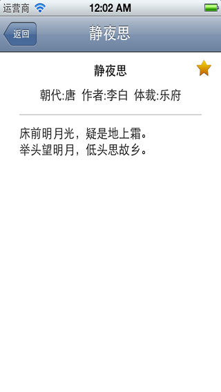 中国是一个诗歌的国度,古典诗词是中国文学史上一颗光辉灿烂的明珠,是我们民族文化遗产中极为珍贵的一部分。早在三千年前,我们的祖先就创作出了以诗三百为代表的优秀诗篇,此后每个历史时期,诗歌创作都结出了丰硕的成果,其中不少名篇佳句脍炙人口,传诵至今。 ------------------------ 应用收集了近7万首诗词! ------------------------ 涵盖的朝代:先秦、汉、魏晋、南北朝、隋、唐、五代、宋、辽、金、元、明、清、近代、现代、当代 涵盖的诗词体裁:五绝、六绝、七绝、五律、七律、四古、五古、六古、七古、五排、七排、词、偈、句、散曲、杂言、乐府、联句、楚辞