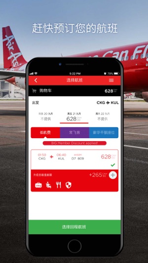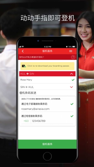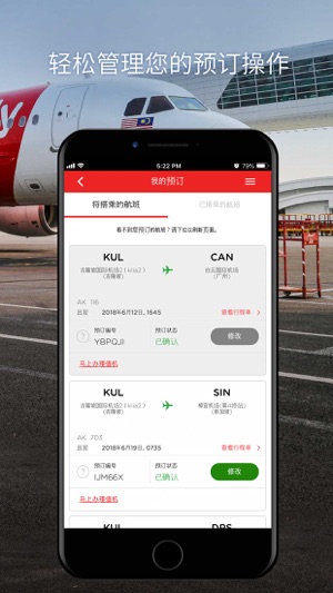 您最喜爱的目的地,尽在掌握中! 亚洲航空移动应用程序让您轻松预订航班,并且随时随地办理值机! 查看我们最低航费、管理您的预订及提前预订餐点、座位、行李及旅游保险。 当您通过应用程序报到时,您将收到手机条码。前往机场的自助服务亭扫描条码,就可打印您的登机牌。如果您没有行李需要托运,您也可以选择取得电子登机牌,直接前往登机门。 马上下载应用程序,踏上您的梦想假期之路!