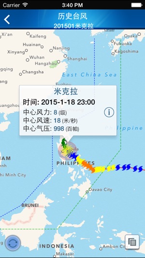 本系统通过在GIS地图上展示区域内的台风路径、卫星云图、气象雷达图等信息。系统界面风格简洁、展示方式多样、数据加载快速,为防汛指挥作出快速、 正确的决策。
