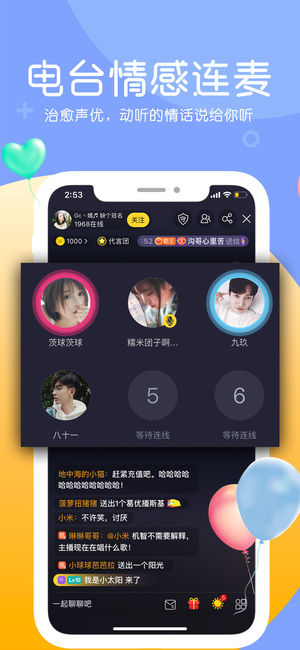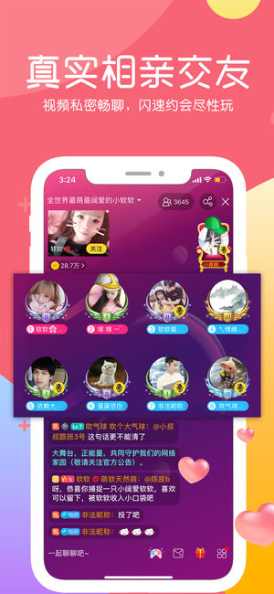 KK直播,一款暖心的在线视频直播软件,聊天娱乐交友神器!满场高颜值主播,每天都是好心情! 帅哥靓女视频、直播连线,才艺PK,情感电台,私信交友,手机直播,尽在KK直播! 【玩法特色】 (1)看直播。喊麦搞怪,直播逗趣,随时随地拿出手机就能看到在线视频才艺秀,免费观看欣赏。 (2)享畅聊。免费即时沟通,支持一对一、视频连麦、悄悄话,胡聊海聊谈天说地,畅所欲言,欢聚一堂。 (3)听电台。当下流行音乐和段子,情感沟通,晚安心语,直播互动声优尽享。 (4)玩游戏。最新奇游戏玩法,开心抓娃娃、开心刮刮乐、全民才艺PK,同主播一起玩游戏,从此不孤单。 (5)嗨节目。拼脑力拼手速的《金榜题名》答题赢现金…