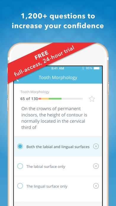 Created in partnership with the University of Iowa College of Dentistry We are dental professionals, not a publishing company. We have a 99% pass rate because we help guide you through the NBDE process and will do everything we can to make you confident and successful on test day. Please reach out to us if you are confused about anything NBDE related or are curious about trying our app. Install the free version today and jump start your studying! We have provided a limited free version of the app that you can try before deciding to upgrade. This version includes a limited amount of practice questions and basic progress metrics. Upgrade to the Standard Version with a one time, in-app purchase that includes access to additional practice questions, tough quiz questions, must-know mnemonics and detailed progress metrics. Get your best value by upgrading to the Premium Version with a one-time, in-app purchase. The Premium Version includes lifetime access to: • 1,200+ meticulously crafted digital flashcards based on old boards questions. We spent months researching, data mining, and evaluating what NBDE concepts are most important for you to know. With our high yield focus you can study less AND be more likely to pass. • 20 practice quizzes to build up your confidence. • Automatic sorting of content based on your individual needs so your study plan is perfectly customized to you. • Hundreds of mnemonics, root words and critical dental vocabulary to allow you to learn faster. • 250+ color pictures allows you to visualize concepts and learn faster. • In depth statistical analysis so you can visualize your progress • Frictionless feedback system connects you directly with us for anywhere, anytime for NBDE guidance. • Retina display graphics to make studying easy on your eyes. • 5 pages of proven test taking and studying strategies so you can perform at peak levels while studying and on test day. *2014 Promethius App of the Year Award *2014 Silicon Prairie App of the Year Award *Featured at the Health 2.0 conference in San Francisco Our Customer Success Team is available from 8am to 6pm, Monday - Friday (except on major holidays). Call or text us at 319-246-5303 or email us at dental@hltcorp.com with any questions. Hey guys, since we last talked...I PASSED BOARDS! Thanks for the app...great help and I loved using it. It made studying less monotonous and more convenient. --Matt, D2 Dental Anatomy Mastery was written by Dr. Geoffrey Skinner DDS, A contributor to the United States National Board Dental Examination (NBDE).
