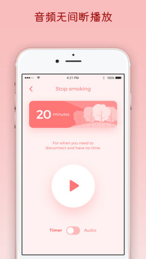 • 您希望学习如何冥想,但是又没有时间参加培训班? • 您想要体验冥想的乐趣并且省下很多钱吗? • 您在家中进行的冥想练习需要获得帮助吗? • 此应用程序将会通过一系列适合的音频为您提供帮助,满足日常生活中练习冥想的需要。 • 计时器 — 计时器让您不需要听叙述就可以进行冥想。每当一刻钟过去,闹钟就会响一次。 我们的用户是如何评价的? 冥想21世纪,好极了。我一直在寻找这样一款应用程序。我每天下班之后都会用上10分钟并且每天都有新感觉。非常简单易用,是繁忙生活的减压助手。 这是我正在寻找的东西,“它正是我所需要的。对于减压和找到心平气和与意念集中的状态…