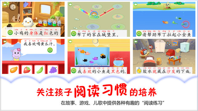 **** 幼小衔接,儿童识字,用2Kids就够了 **** 【2Kids爱阅读】是【2Kids学汉字】的提高版本,在扩大识字量的同时,通过小游戏、故事内卷轴短句、儿歌跟唱等形式,提高孩子对于阅读的兴趣,逐渐养成阅读习惯,让孩子轻松高效地实现幼小衔接。 【客户的反馈】 1. “2Kids爱阅读”是一款能让孩子坚持学完的产品,很难得。 2. “2Kids爱阅读”让孩子养成了每天10分钟“自觉学习”汉字的习惯了。 3. “2Kids爱阅读”让孩子开开心心地学会了很多汉字,还开始阅读故事了。 4. 一款神奇的早教产品,2Kids加油。 5. ....... (不一一列举了) 【2Kids爱…