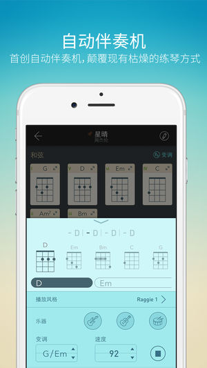 EUMLab 尤克里里助手 是集调音器、节拍器、和弦表、音阶及歌曲和弦查询于一身的学习Ukulele必备工具箱。 详细功能列表如下: 1. 专业级别的高准确度调音器; 2. 精确的节拍器,支持13种不同音色及自定义拍号; 3. 扫弦练习。 帮助你训练各种扫弦技巧,例如“下,下上,上下上”; 4. 鼓机。支持116组不同风格的打击音乐循环,涵盖摇滚、流行、爵士等风格; 5. 音阶。支持多达108种音阶,从爵士音阶,布鲁斯音阶到地里亚音阶; 6. 和弦表。 不仅可以查看和弦指法,还能点击听到和弦声音。 并且单和弦支持显示不同把位的和弦指法; 7. 5度环和弦表。 通过5度环和弦表,你可以轻松实现…