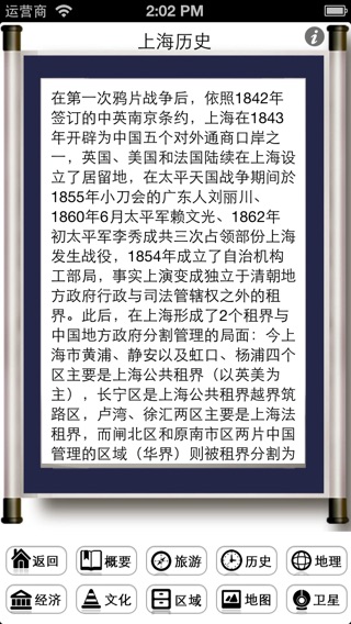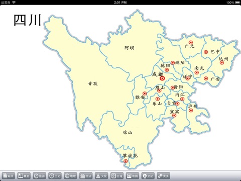 中国位于亚洲大陆的东部、太平洋西岸,陆地面积约960万平方公里。中国领土北起漠河以北的黑龙江江心(北纬53°30′),南到南沙群岛南端的曾母暗沙(北纬4°),跨纬度49度多;东起黑龙江与乌苏里江汇合处(东经135°05′),西到帕米尔高原(东经73°40′),跨经度60多度。从南到北,从东到西,距离都在5000公里以上。中国陆地边界长达2.28万公里,大陆海岸线长约1.8万公里,海域面积473万平方公里。 中国有23个省 5个自治区 4个直辖市 2个特别行政区 共34个省级行政区 23个省:从北向南,黑龙江省(黑)、吉林省(吉)辽宁省(辽),河北省(冀)、河南省(豫)、山东省(鲁)、山西省(晋),陕西省(陕、秦)、甘肃省(甘、陇) 、青海省(青),四川省(川、蜀) 、云南省(滇、云) 、贵州省(黔、贵) ,湖南省(湘)、湖北省(鄂) 、江苏省(苏)、 江西省(赣)、安徽省(皖) 、浙江省(浙)、广东省(粤)、福建省(闽), 外加海南省(琼)、台湾省(台) 4个直辖市: 北京市、天津市、上海市、重庆市 5个自治区 :广西壮族自治区、内蒙古自治区、西藏自治区、宁夏回族自治区、新疆维吾尔自治区 2个特别行政区:香港特别行政区、澳门特别行政区 中华大地应用软件详细介绍我国辽阔地域,各省市区介绍,旅游,历史,地理,经济,文化,是了解中华人民共和国最好的应用之一.