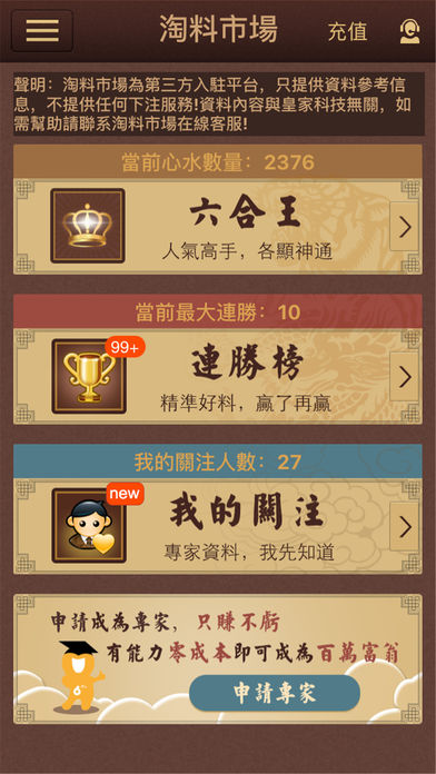 六合宝典是一款由香港皇家科技基于香港六合彩为内容,集淘料市场、历史开奖、统计资讯、推荐数据于一体的六合彩资讯应用。 六合宝典通过大量的数据,以及运用自主研发的分析六合彩的方法,率先实现了六合彩各种玩法的推荐。应用中的数据统计把特码、平码、波色、生肖等各玩法的历史以图标形式显示出来,用户可以查询到过往任何阶段的数据。六合宝典是具有资源占有低、操作简捷、数据齐全等特点,是目前国内最受欢迎的全能六合彩资讯应用之一。 ----主要功能---- 1.视频开奖:第一时间知道开奖号码,开奖号码自动推送通知; 2.六合图库:丰富的六合图库资源,不怕你找不到就怕你想不到; 3.赚钱:绑定邀请码和好朋友一起轻松赚大钱,把财神领回家; 4.淘料市场:六合王、连胜榜双管齐下,让你中奖中个不停; 5.资讯统计:史上最好用的特码、生肖、波色、尾数统计,大奖尽在掌握中; 6.交流大厅:找到志同道合的朋友,交流心得技巧,分享中奖喜悦; 7.幽默猜测:趣味视频、图片,免费参与竞猜,彩民必备练手神器; 8.工具宝箱:好玩有趣的各类选号工具,祝你好运中大奖。
