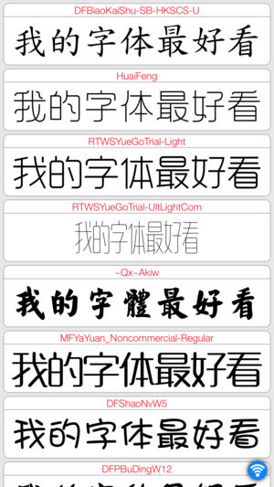 使用“字体预览”,你可以查看所有iOS系统自带的系统字体及安装任意第三方字体。 主要功能: * 在同一页面查看和比较不同字体的表现效果。 * 通过iTunes共享或者电脑浏览器安装用户字体,支持.otf, .ttc, .ttf, .dfont等格式. * 支持用户自定义文本。 * 更为重要的是,它是免费的!