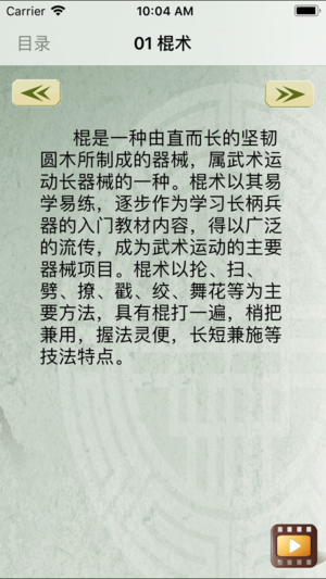 棍术历史悠久,流传区域广泛,其内容之丰富、风格之独特、劲力之迅猛、技法之奥妙、实属少见。它的优点是把法灵活、变化多端、结构精巧、古朴无华。许多好的传统棍术套路,除以上诸优点外,还在劲力上发力饱满、着力浑厚、攻防清晰,大小头并使、单双手并用、兼枪带棒,确属罕见。 产品示范教学视频简要介绍了棍术的主要棍法、基本棍术组合动作、基础棍术、初级棍术(全套正面示范、四段分段示范、全套背向示范)。并配有“初级棍术”相关介绍(棍法、棍的用法、基本技法、实战技法、主要类别、注意事项、历史渊源等)及棍法讲解的文字说明,便于理解。 《初级棍》示范视频具体包含以下…