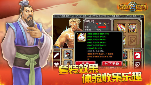 《帝国塔防2》在全球拥有4500万玩家,曾荣获iOS和GooglePlay双重推荐。 作为一款新颖的塔防类游戏,《帝国塔防2》以三国为背景,把养成武将作为主线,在三国的历史战役中不断的升级武将技能、挑战更多的关卡。 【游戏特色】 1、赵云、吕布、貂蝉等十七位各怀独门绝技的帝国英雄整装待发,配合十八种不同类型的兵种助你一统帝国! 2、精心布局百变塔防路线,是诱敌深入,还是迂回周旋,个性路线完全由你做主!打破传统塔防格局,智谋策略才是决定战斗输赢关键! 3、策略塔防与角色扮演要素的完美结合,武将养成、装备强化、兵种升级,喂养坐骑,在群雄逐鹿中成就王者荣耀。 4、42个三国经典战役关卡一气呵成,单机塔防与竞技场联机模式完美结合,排行榜中论高低,帝国之间见证荣耀! 【友情提示】 现在下载即免费赠送海量水晶! 【联系我们】 客服微信:优聚小助手(ID:youjuzhushou)