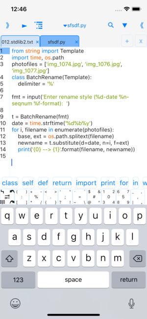 这是一个 ios python3.3 应用,您可以学习、运行、分享python3.3脚本。 特色: 自动联想、自动缩进、代码颜色、横屏开发。 在(内置浏览器或文本编辑器)中选择文本即可运行。 代码模板(新建文件的内容为代码模板的内容)。 *随心键盘输入python脚本、并可解析与执行脚本程序,支持input输入内容。 *随心通过文件系统支持打开txt,pdf,chm,mp3,m4v,zip,gif,png,html,py,doc…文件格式。 *随心调整代码颜色及字体大小,支持上下左右移动光标,方便阅读与书写。 *随心通过内置浏览器查找学习资料。 *随心保存python脚本与学习资料,并可修改…