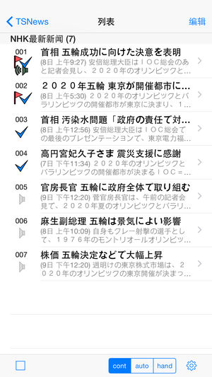 使用这个程序,你可以看到最新的新闻在日本Apple Watch™。 此外,你可以听到日本语音合成,那么你就可以看到标记同步移动与Apple Watch的演讲。 当然,这个应用程序也可以在iPhone上运行。在背景音效模式,您可以通过遥控器进行控制。 如果你想在日语学习日本的,我建议这个程序。 例如,最近的新闻在日本如下:东京奥运会,2020年福岛核电厂,富士山为世界遗产,等等。 也有试用版的TSNewsLE。 的限制如下:的新闻类别限制。广告中的iAD。iCloud的不同步。没有拆分视图在iPad上。 另外两个版本可以在Apple Watch运行。 请考虑一下。