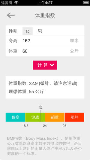 - 体重指数(BMI)测算 衡量人体胖瘦程度及健康状况常用的一个标准 - 头身比例 黄金身材比例测试 - 理想身材 新时尚计算公式