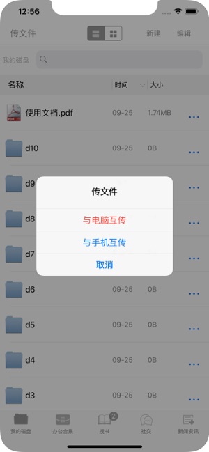 传文件工具:与电脑互传,与手机互传, 传文件到微信等第三方app等 任意一台电脑传到手机,任意一部手机传到电脑,一键搞定传文件。 文件管理功能: 多层文件夹创建, 多种文件格式创建,pdf,excel,txt等 一键返回任意一级目录,简单方便 批量删除移动文件 多种排序筛选 文档阅读: 支持几乎所有文件格式的阅读,包括办公文档文件,图片,视频,声音文件,小说文件等。如epub,pdf,excel,word,docx,doc,xlsx,xls,txt,png,jpg,gif,mp3,MP4,wav,rar,zip等所有文档文件的阅读。 办公合集: 提供办公必备的实用工具:日历,提醒,记事本…